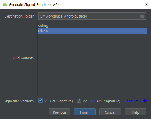 안드로이드 Generate Signed Bundle APK 빌드시에 Signature Versions 옵션 조사