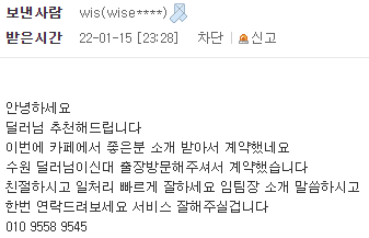 문자등으로 명함을 받았다면 제조사 사이트에서 공식 딜러인지 확인 / 해당 지점에 전화해서 근무하는지 확인(최소 2명)