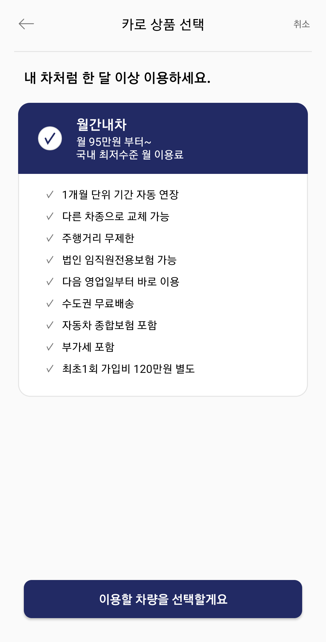 일단 저는 월단위 렌트에 관심이 있어서 들어온 것이라서 확인하니