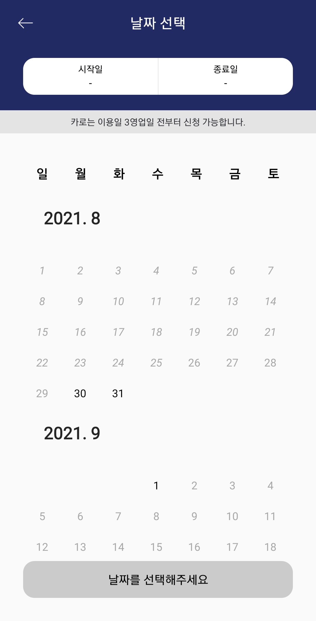 이용시작일은 오늘부터 3일후까지만 선택가능합니다