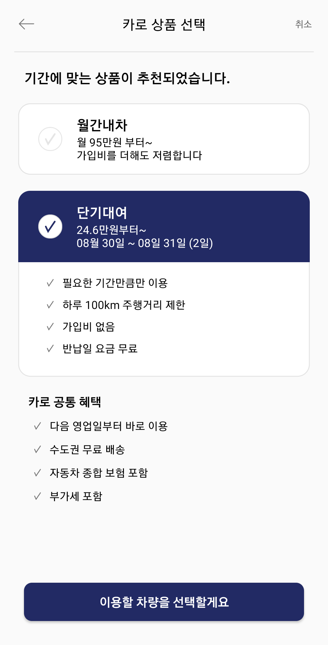 정확한 기간을 지정해서 이용하기는 단기렌트(한달이하)